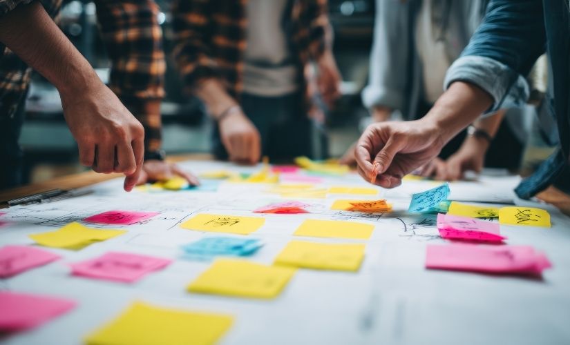 - L’ensemble du groupe trie et sélectionne les idées qui seront les plus intéressantes à travailler. Ainsi, l’équipe peut réfléchir sereinement aux propositions qui apportent de véritables solutions à la problématique de départ.