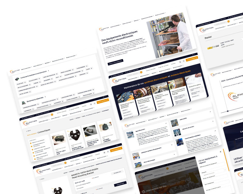 Le Groupe Alphitan, leader européen de la réparation de moteurs électriques et du négoce de pièces détachées, faisait face à un défi digital majeur : la fragmentation de son image et de ses outils de vente. Avec deux sites e-commerce sous Magento et un site vitrine institutionnel sous WordPress, l'expérience utilisateur était saccadée et la gestion complexe. L'enjeu pour Definima était de fusionner ces entités en un site e-commerce unique et capable de répondre aux exigences du secteur B2B.